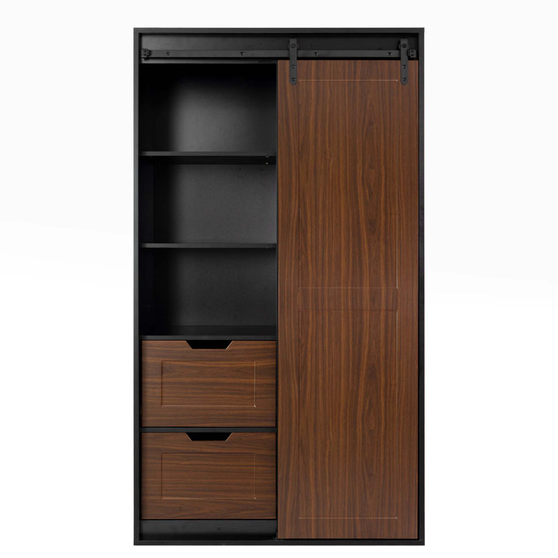 دولاب عملي وواسع يوفر حلاً متكاملاً لتخزين مختلف أغراض الأسرة بفضل تقسيمه الذكي والمقاسات المدروسة. يضم باب انزلاقي بتصميم عصري، درجين، ورفوف مفتوحة لتخزين الملابس، البطانيات، الإكسسوارات، والمجلات.