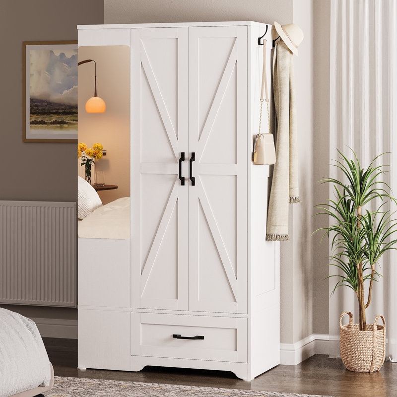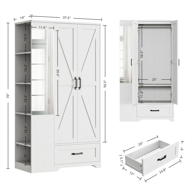 يحتوي على مرآة بطول كامل، درج، ورفوف جانبية لتخزين الأحذية والحقائب.