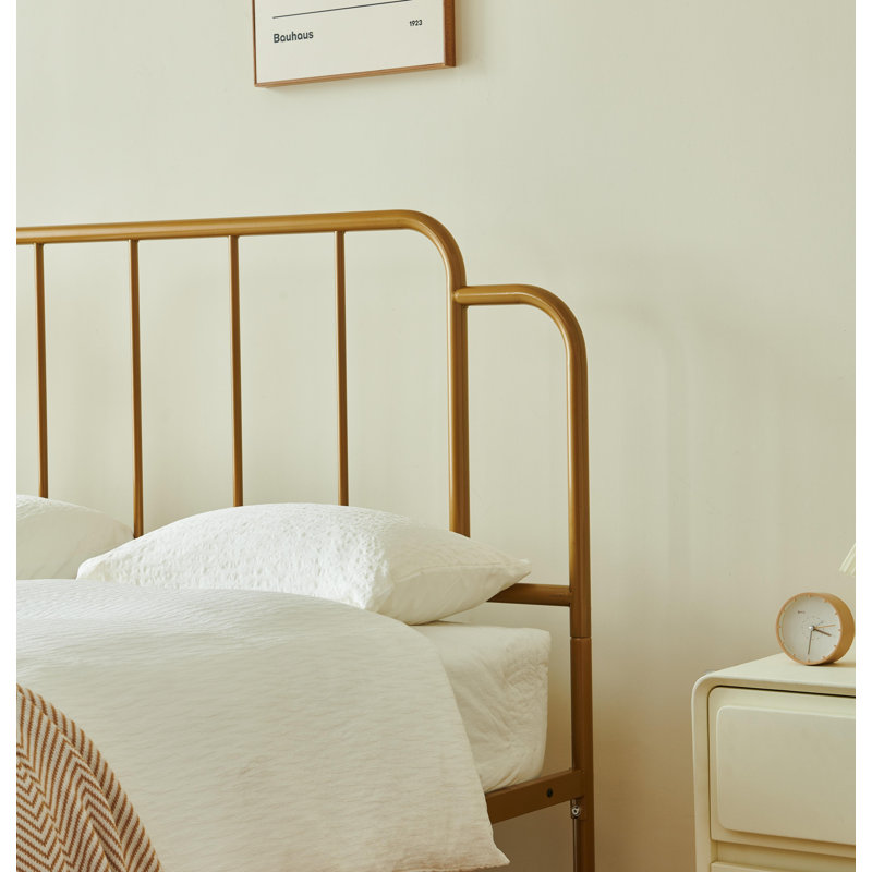 وصف: جورثا – سرير معدن ذهبي بتصميم عصري بدون بوكس سبرينج