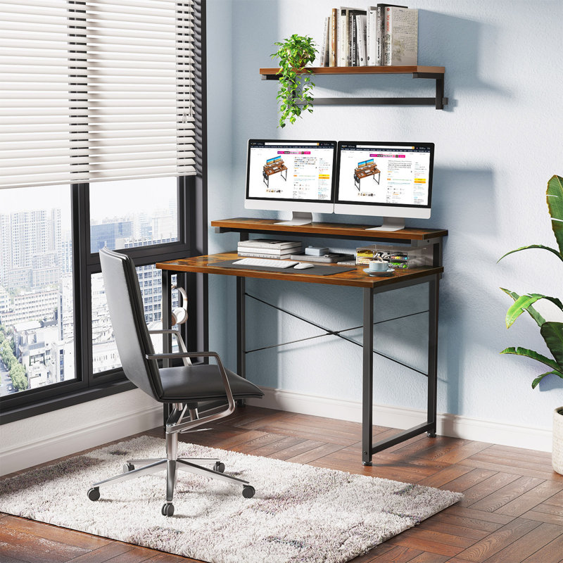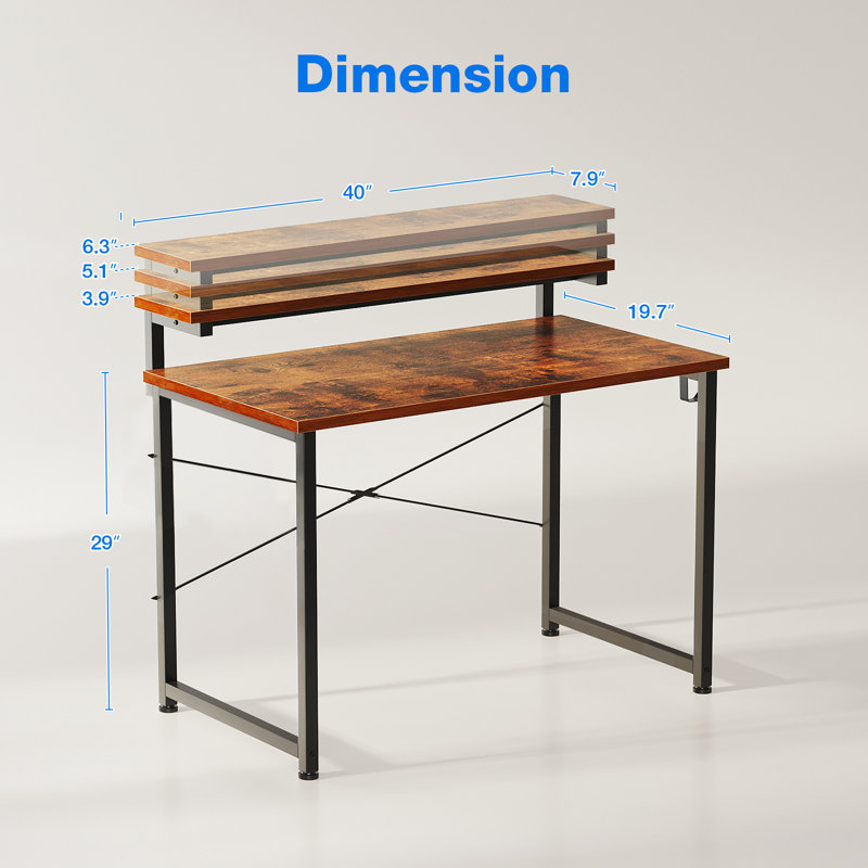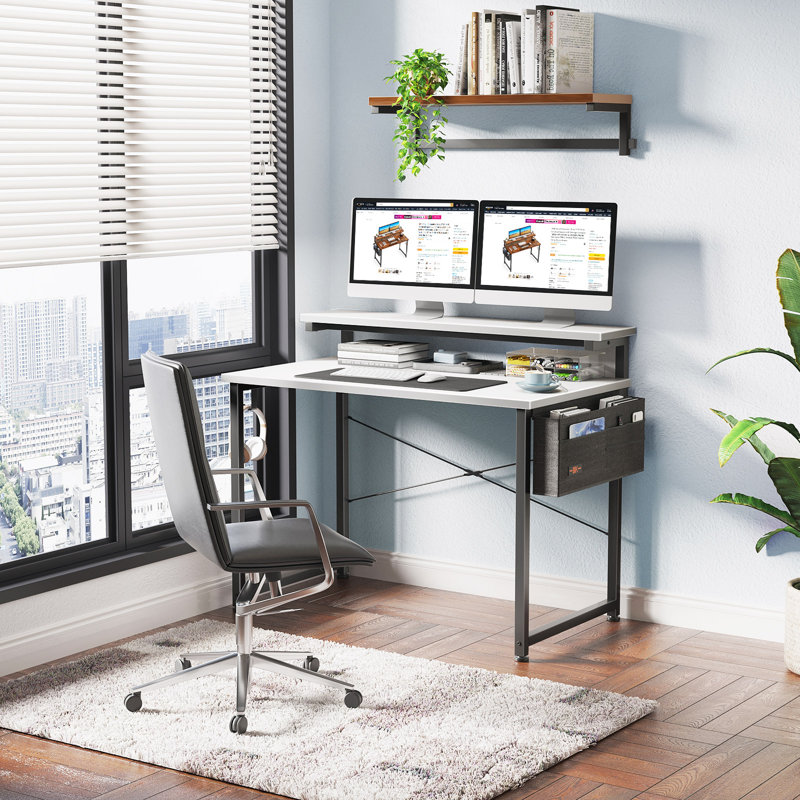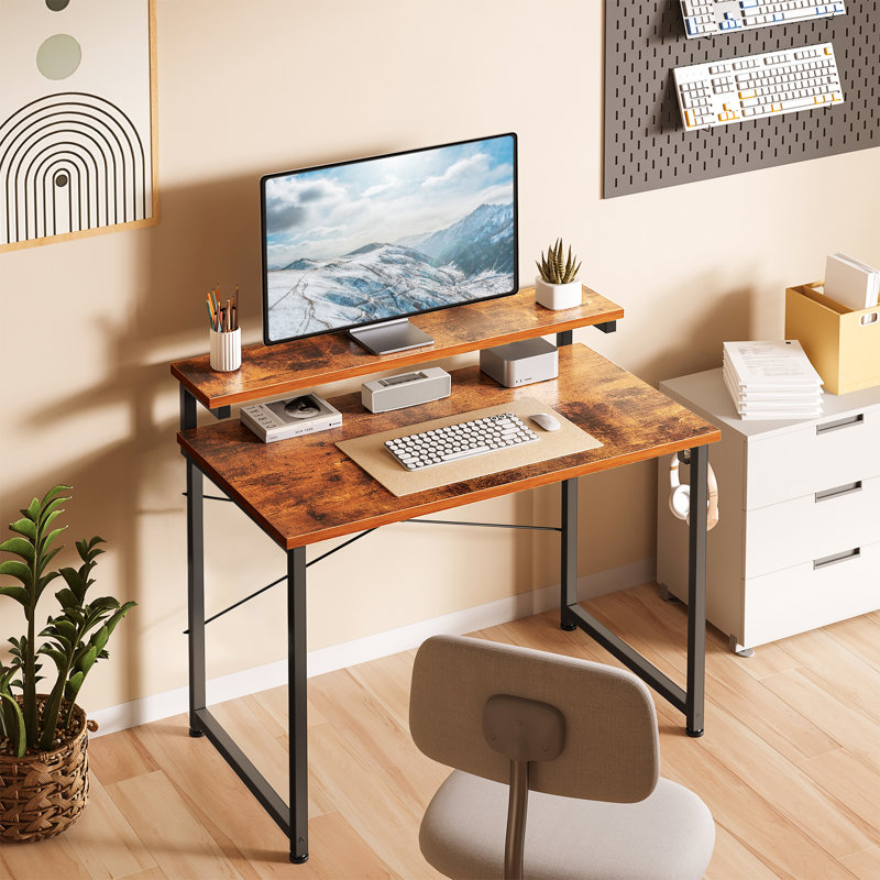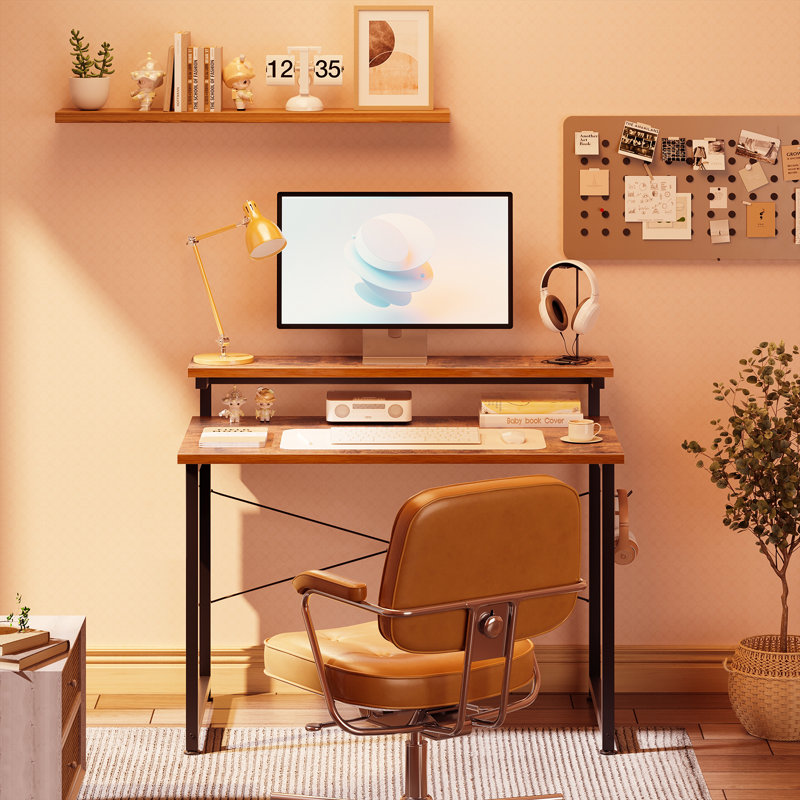 مكتب عملي يتميز بتصميم ذكي يوفر حامل شاشة قابل للتعديل لثلاث مستويات ارتفاع، مما يساعدك على تحقيق وضعية جلوس مريحة أثناء العمل أو الدراسة. يوفر سطح المكتب مساحة كافية للأجهزة والكتب، ليكون خيارًا مثاليًا لمكتب منزلي أو ركن دراسة هادئ ومنظم.