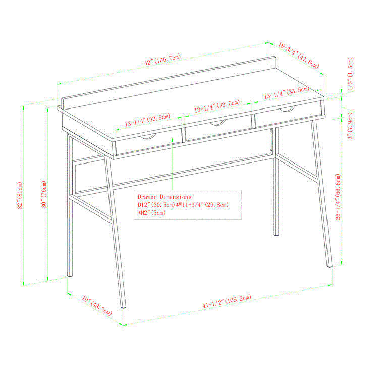 المقاس:العرض 105 سم × العمق 47 سم × الارتفاع 81 سم