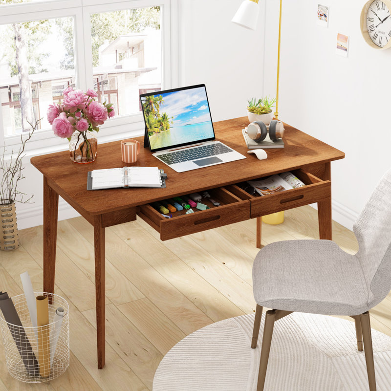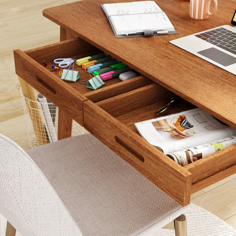 مكتب كمبيوتر أنيق بستايل نورديك، سطح واسع يوفر مساحة عمل مريحة مع درجين لتنظيم الأدوات، مصنوع من خشب طبيعي بجودة عالية ليناسب ديكورك العصري.